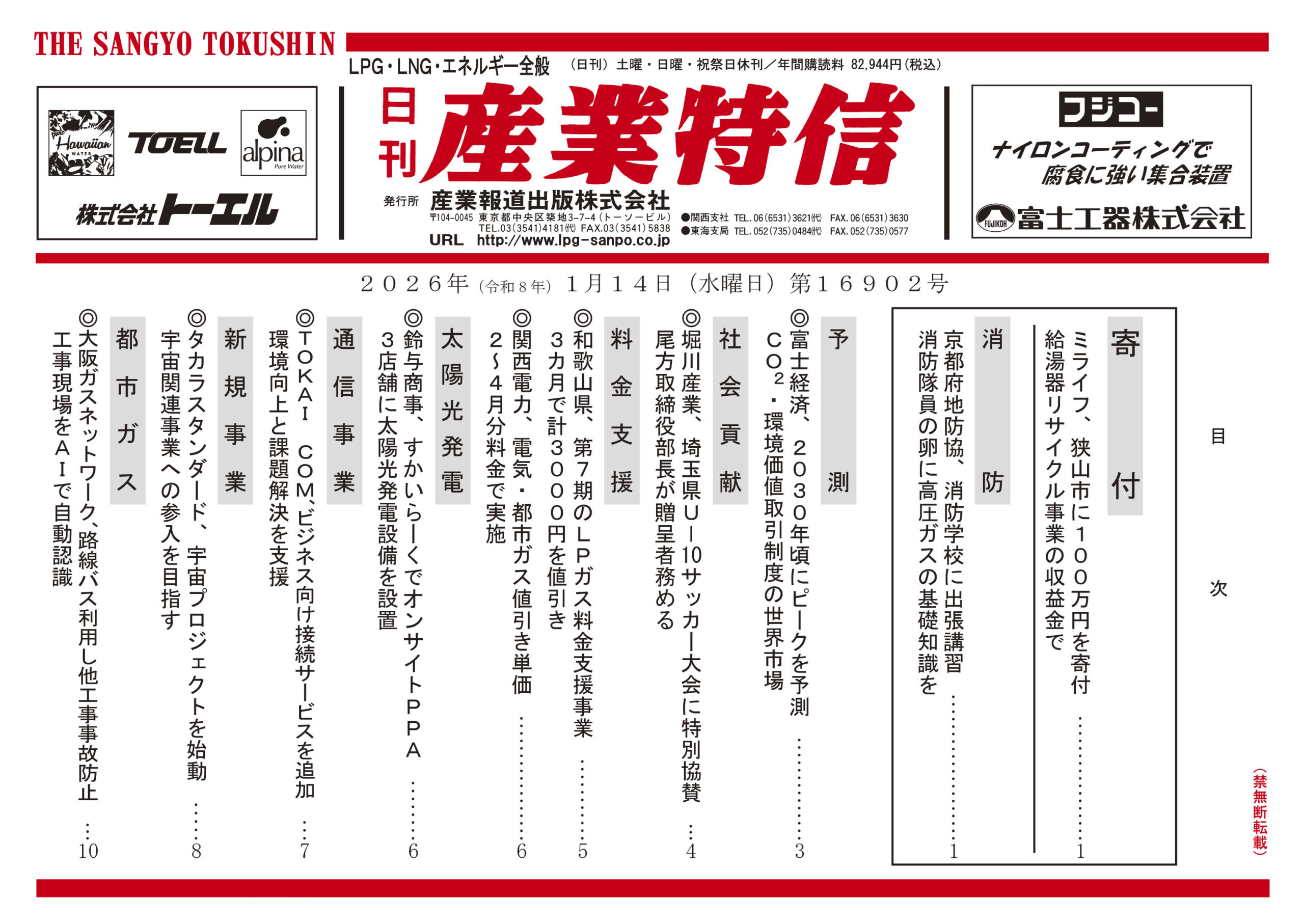 2026年(令和8 年)1月14日(水曜日)第16902号 バックナンバー X Facebook LINE 2026.01.14 ダウンロードには会員登録が必要です。 記事の続きの閲覧は会員(定期購読者)のみに制限されています。全文を読むには ログイン してください。