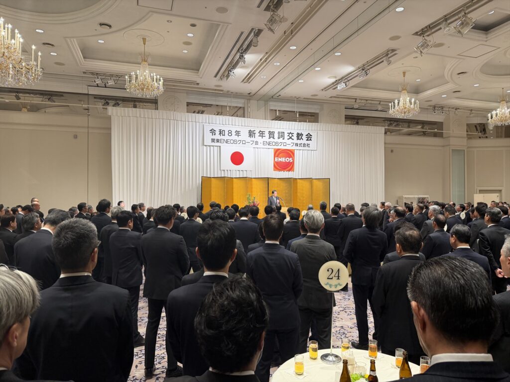 ENEOSグローブ(東京都千代田区、小西徹社長)と関東ENEOSグローブ会(佐藤一博会長=佐藤興産社長)は13日、東京都港区の第一ホテル東京で令和8年新年賀詞交歓会を共催で開き、小西社長や佐藤会長が約280人の参加者を前に今年の方針を語るなどした。