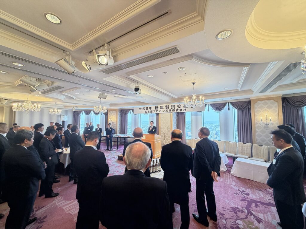 名古屋プロパン瓦斯(名古屋市、後藤庄樹社長)は15日、市内の名古屋マリオットアソシアホテルで新年賀詞交歓会を開いた。冒頭のあいさつで後藤会長は、今年のテーマとして「AI」「質量販売」「インフレ」の3点に対応していく方針を述べ協力を求めた。