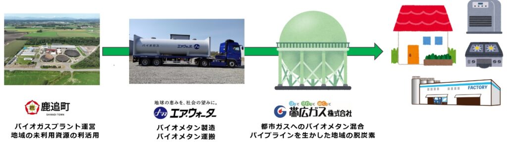 北海道鹿追町(喜井知己町長)、帯広ガス(北海道帯広市、内木真紀衣社長)、エア・ウォーター(大阪市、松林良祐社長)の3者は、バイオメタン都市ガス混入に向けた共同検討を開始した。カーボンニュートラルな国産エネルギーの地産地消モデル構築に向け1月14日、帯広ガス本社で基本合意書調印式を開いた。