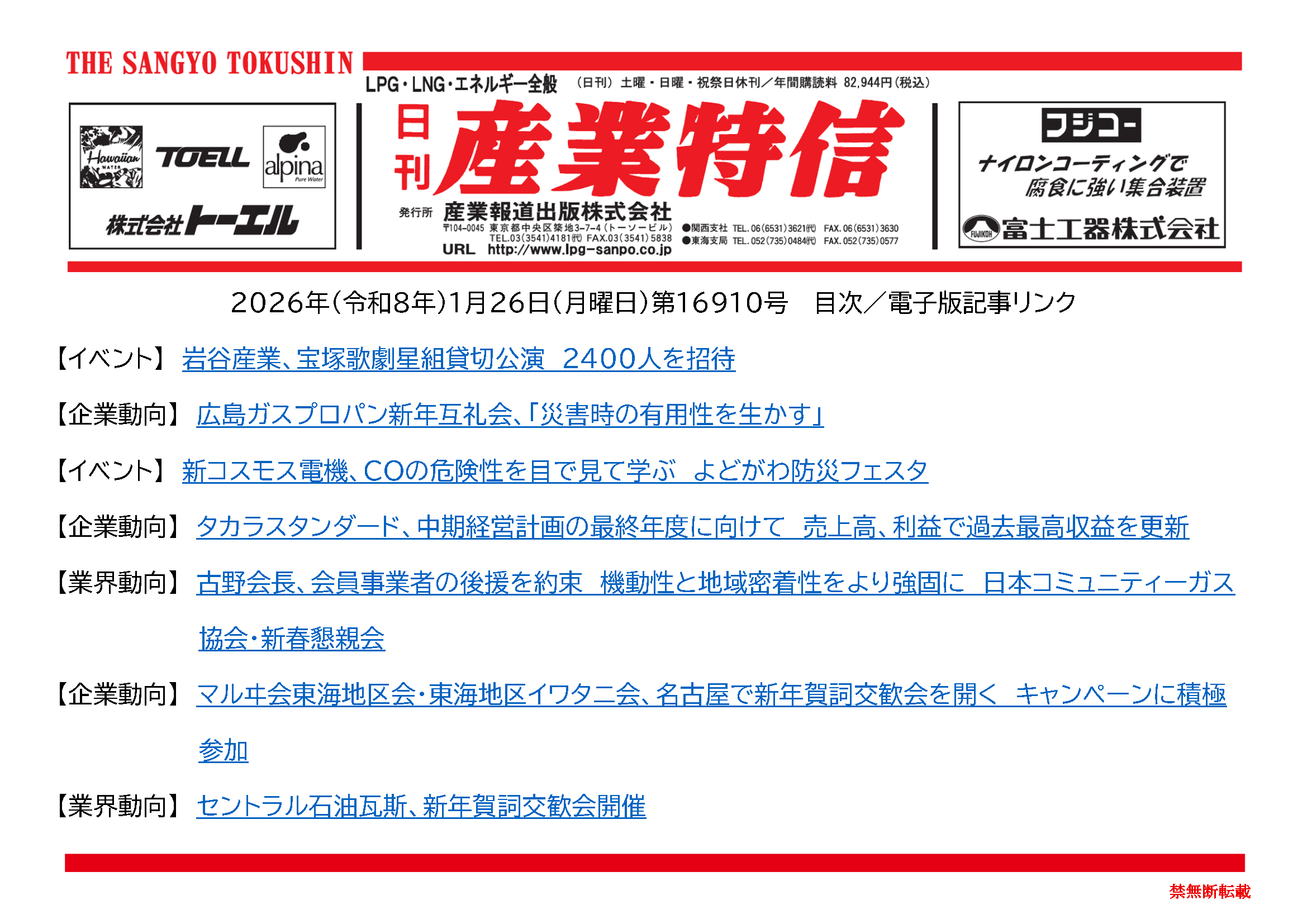 2026年(令和8年)1月26日(月曜日)第16910号 バックナンバー X Facebook LINE 2026.01.26 ダウンロードには会員登録が必要です。 記事の続きの閲覧は会員(定期購読者)のみに制限されています。全文を読むには ログイン してください。