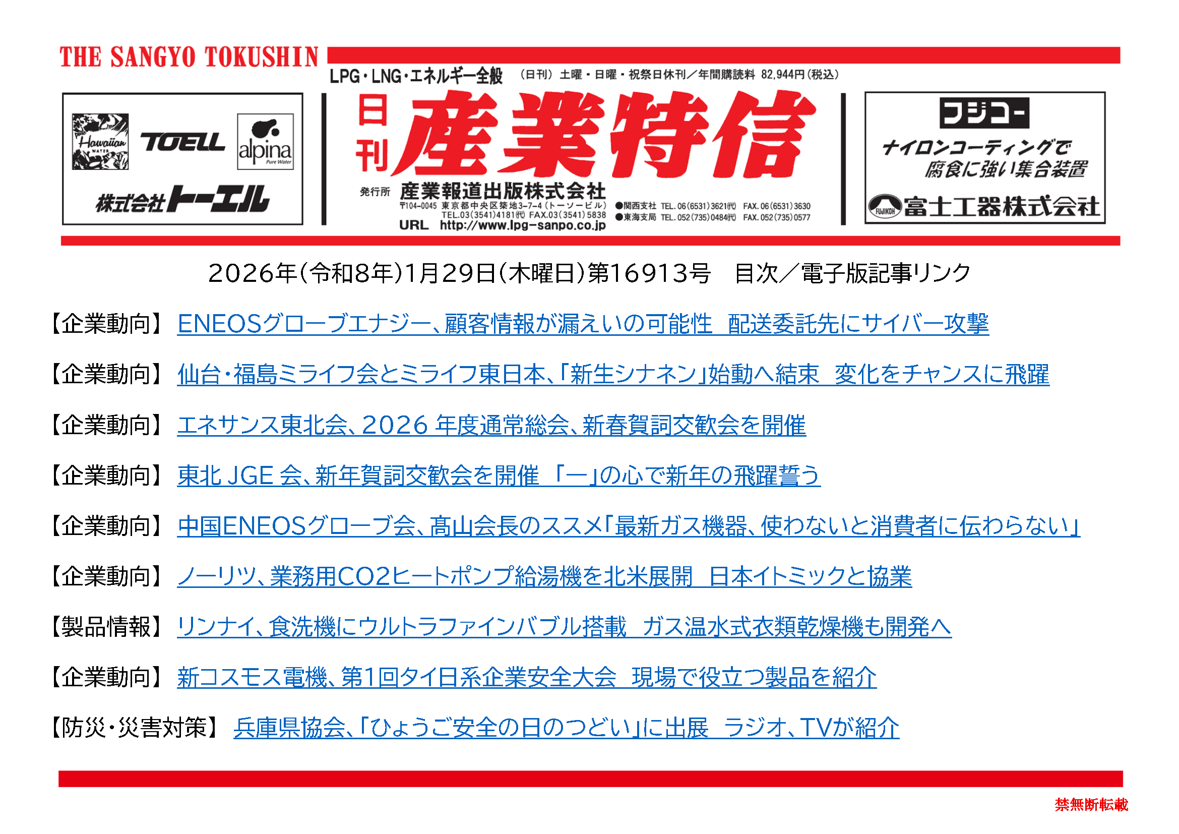 2026年(令和8年)1月29日(木曜日)第16913号 バックナンバー X Facebook LINE 2026.01.29 ダウンロードには会員登録が必要です。 記事の続きの閲覧は会員(定期購読者)のみに制限されています。全文を読むには ログイン してください。