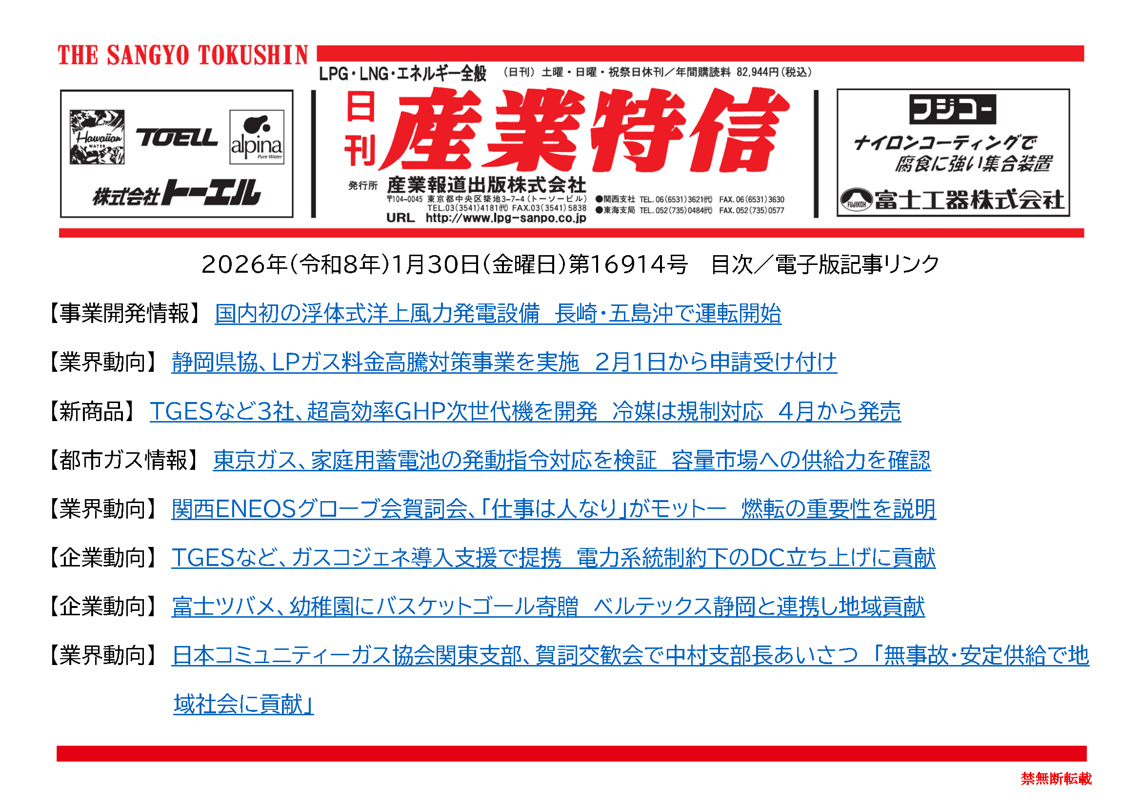 2026年(令和8年)1月30日(金曜日)第16914号 バックナンバー X Facebook LINE 2026.01.30 ダウンロードには会員登録が必要です。 記事の続きの閲覧は会員(定期購読者)のみに制限されています。全文を読むには ログイン してください。