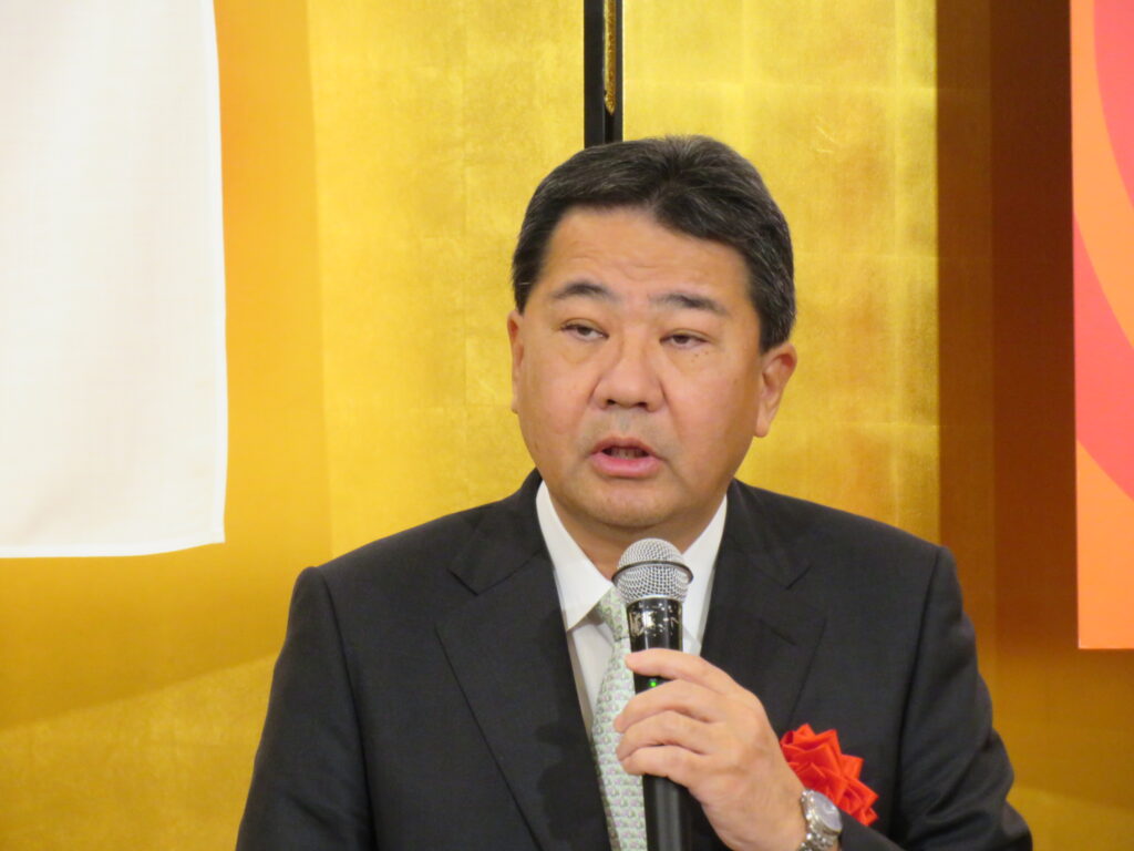 冒頭、あいさつに立った井田会長は「エネルギーを取り巻く環境は刻一刻と変化している。こうした中、昨年発表された『第7次エネルギー基本計画』で、LPガスが日本における重要なエネルギーであると改めて位置づけられたことは、我々の仕事に対する誇りと責任を再認識させるものとなった」と振り返った。また、生成AIの普及に伴う電力需要の急増に触れ、「エネルギー政策の重要性は一段と高まっている。電気とLPガスが共存共栄を図っていくことが肝要だ。当会としても、LPガスの強みを広くアピールし、法令遵守と保安の徹底に一丸となって取り組むことで、お客さまから選ばれるエネルギーとしての地位を確立する年にしたい」と抱負を述べた。