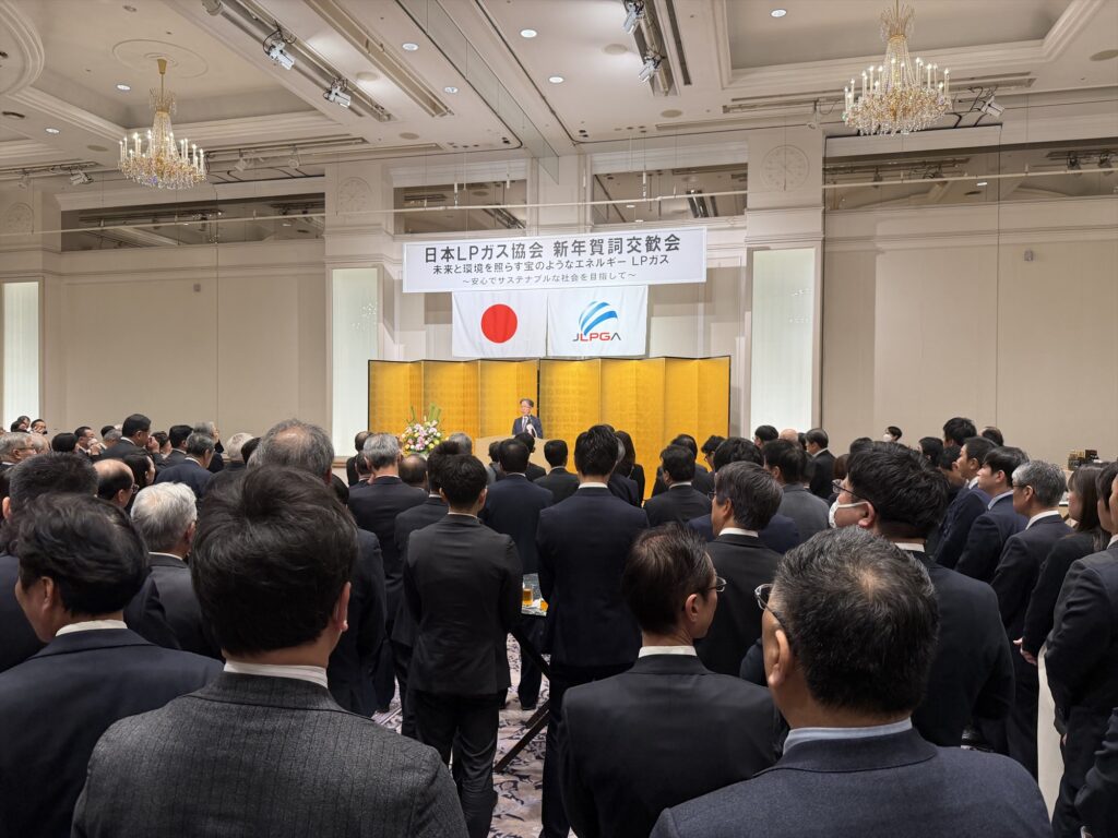 日本LPガス協会(田中惠次会長)は7日、東京都港区の第一ホテル東京で新年賀詞交歓会を開いた。業界関係者が一堂に会する中、最初にあいさつに立った田中会長は、第七次エネルギー基本計画でLPガスの重要性が明記されたことを〝昨年の最大のトピック〟と位置づけ、「責務をしっかりと果たすべく努力を重ねていく」と表明した。