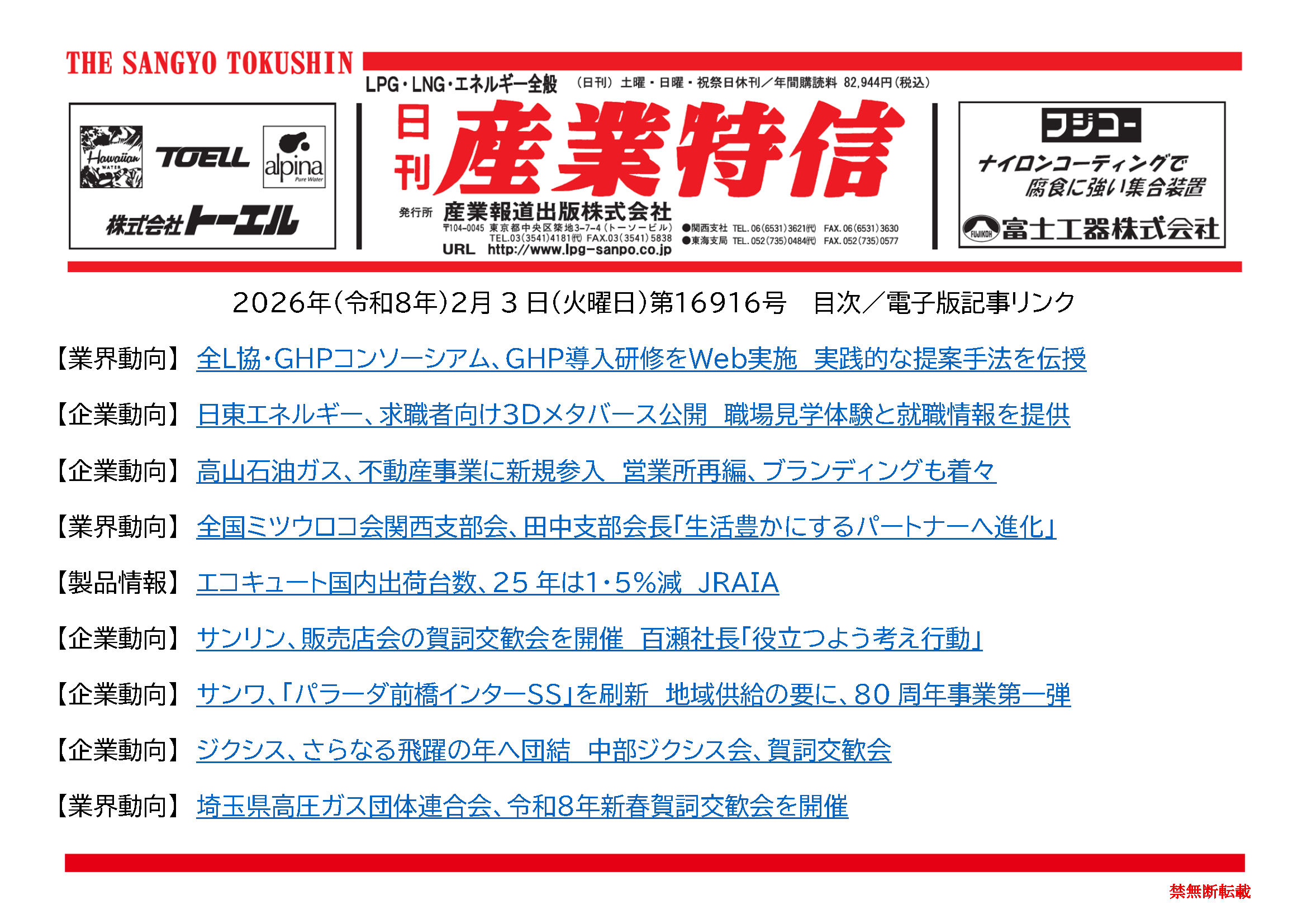 2026年(令和8年)2月3日(火曜日)第16916号 バックナンバー X Facebook LINE 2026.02.03 ダウンロードには会員登録が必要です。 記事の続きの閲覧は会員(定期購読者)のみに制限されています。全文を読むには ログイン してください。