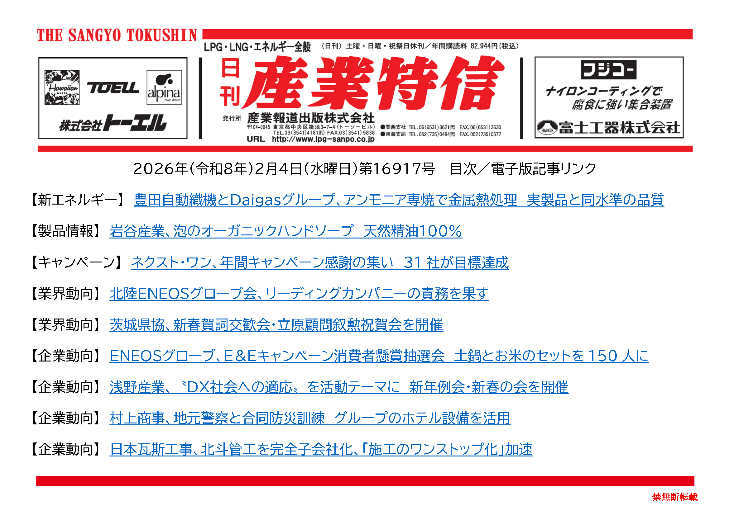 2026年(令和8年)2月4日(水曜日)第16917号 バックナンバー X Facebook LINE 2026.02.04 ダウンロードには会員登録が必要です。 記事の続きの閲覧は会員(定期購読者)のみに制限されています。全文を読むには ログイン してください。