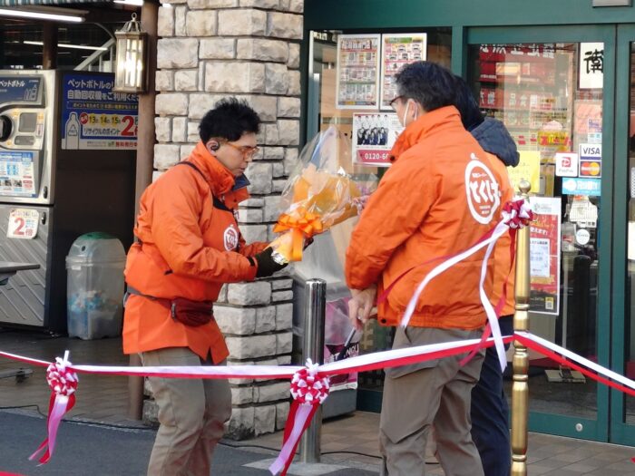 日東エネルギー(東京都足立区、赤津正弥社長)は1月30日、同社が運営する地域密着型コミュニティストア「ベニ―スーパー」の佐野店(東京都足立区)で移動スーパーの出発式を開いた。テープカットを行い、販売パートナーと呼ばれる現場販売員の兼岩純一氏に花束を贈呈した。兼岩氏は出発式でのあいさつで「買い物が『大変なこと』ではなく『楽しみになる時間』になるよう、皆さまの暮らしに寄り添った移動販売を心がけていく。利用者の皆さまの声を何より大切にしながら、安心して頼っていただける存在を目指す」と抱負を述べた。