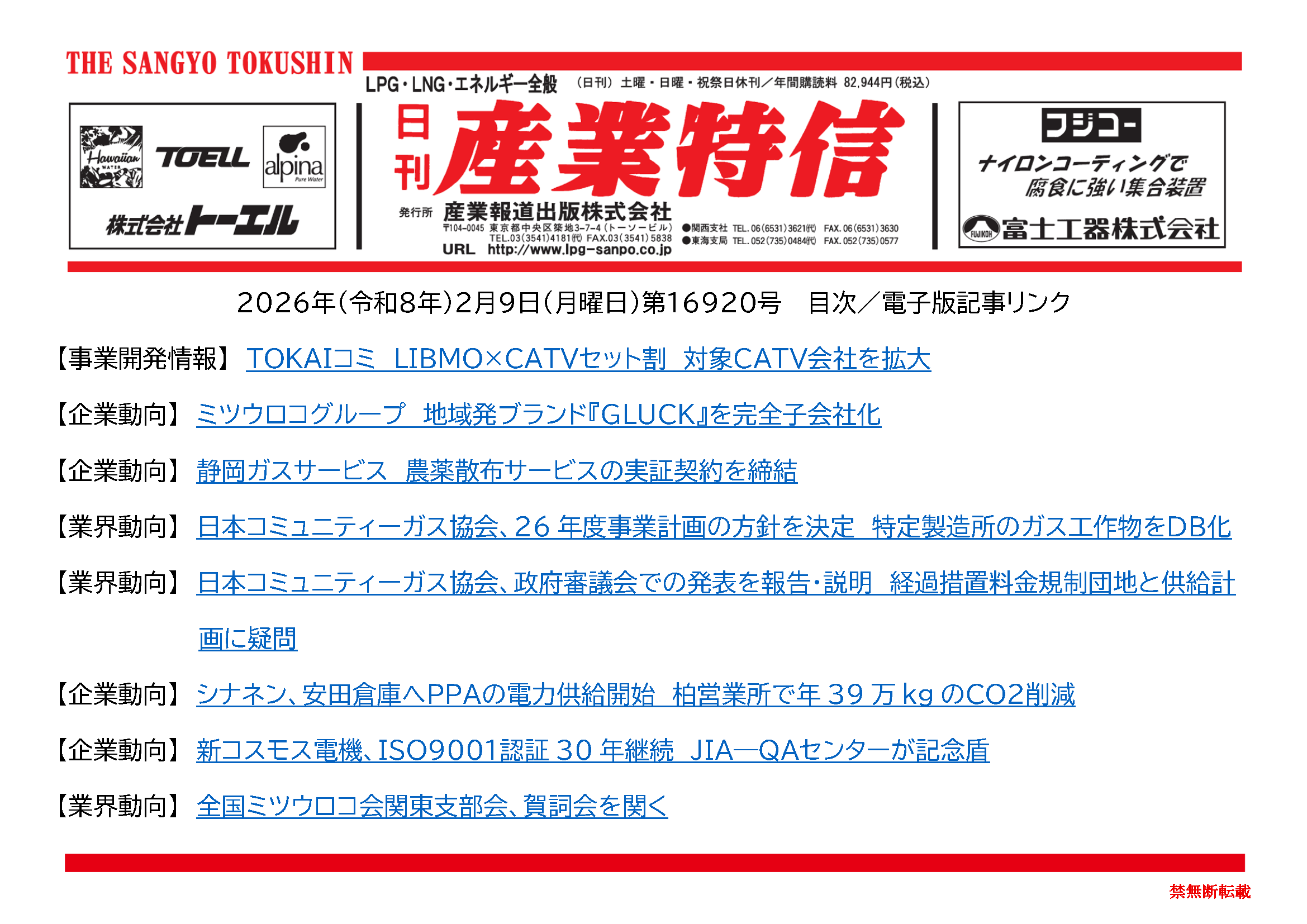 2026年(令和8年)2月9日(月曜日)第16920号 バックナンバー X Facebook LINE 2026.02.09 ダウンロードには会員登録が必要です。 記事の続きの閲覧は会員(定期購読者)のみに制限されています。全文を読むには ログイン してください。