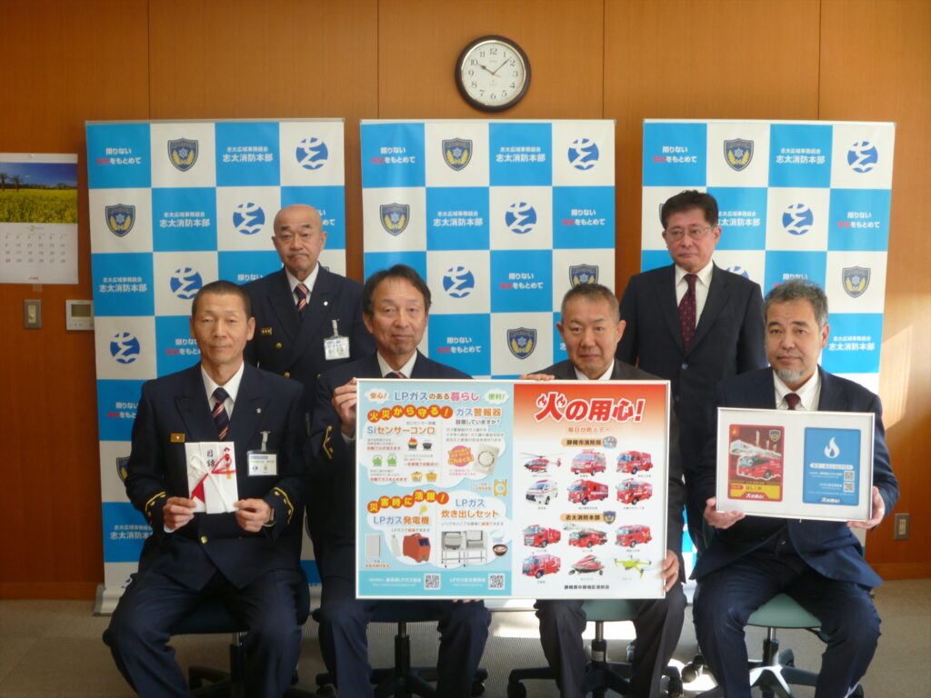 火災予防の啓発に加え、LPガス機器の安全性を広く周知することを目的とした広報活動の一環。同日は静岡県藤枝市の志太消防本部で寄贈式が行われ、県協から増田支部長のほか、大石佳彦副支部長、鈴木邦佳専務理事が出席した。消防会からは増田会長と関剛志副会長が臨席した。