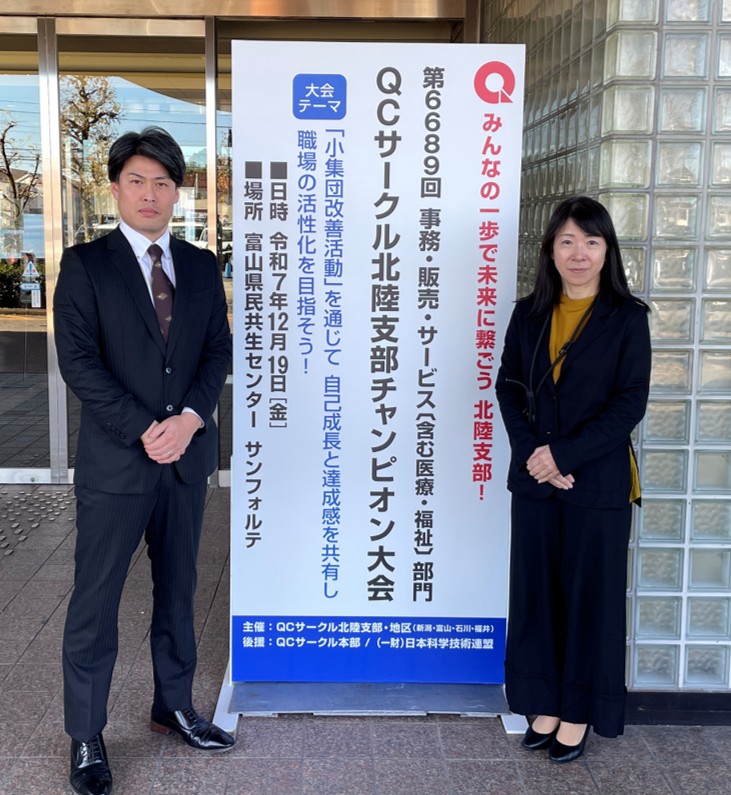 同大会は12月19日、富山市の富山県民共生センター「サンフォルテ」で開かれた。金沢販売所「かなざワンッ!」は、社員のワークライフバランスと働きがい向上をテーマに、「家族に仕事内容を共感されていない」といった課題に対応。かなざわクレド(社員が共有する行動指針)の制定・実践や感謝状の授与、家族向けのガス説明、子どもの職場招待を行った。併せて休暇を取りやすい環境を整備した結果、社員の働きがい向上やお客さまアンケート評価の改善につながり、サービス品質向上の成果を上げた。