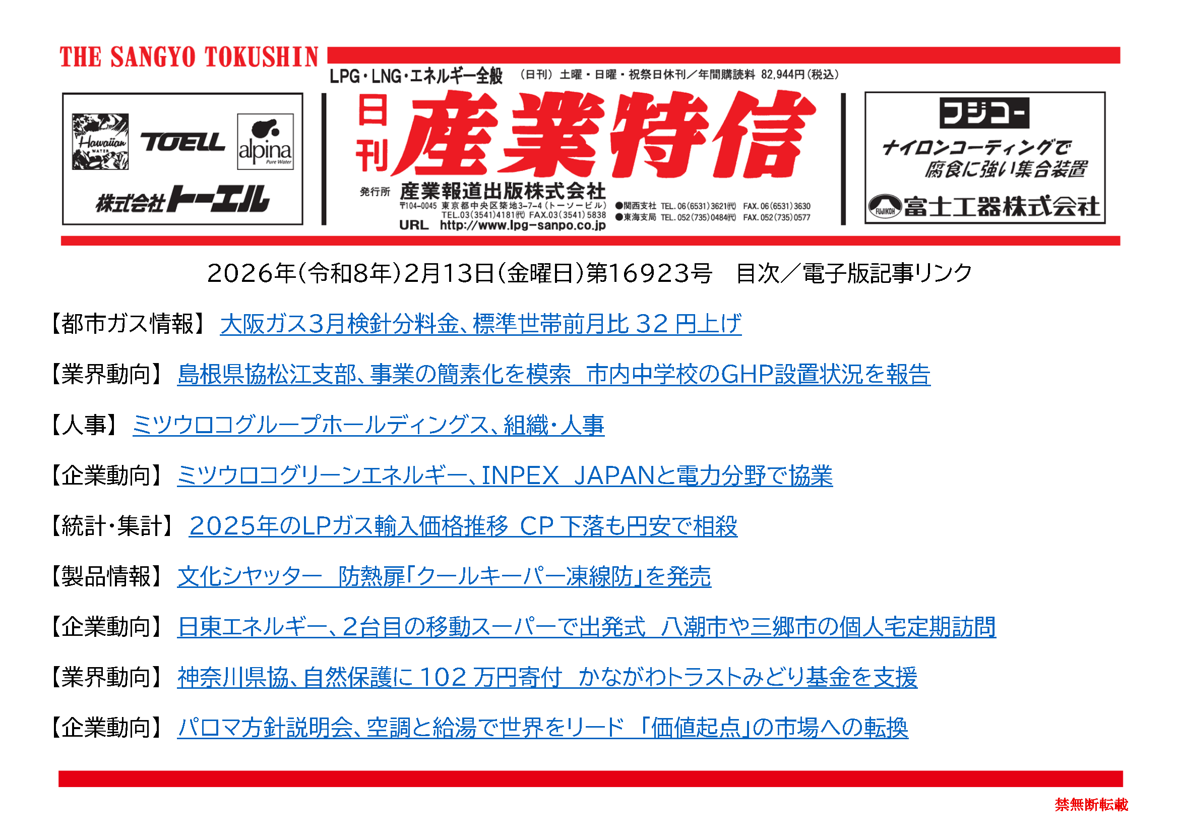 2026年(令和8年)2月13日(金曜日)第16923号 バックナンバー X Facebook LINE 2026.02.13 ダウンロードには会員登録が必要です。 記事の続きの閲覧は会員(定期購読者)のみに制限されています。全文を読むには ログイン してください。