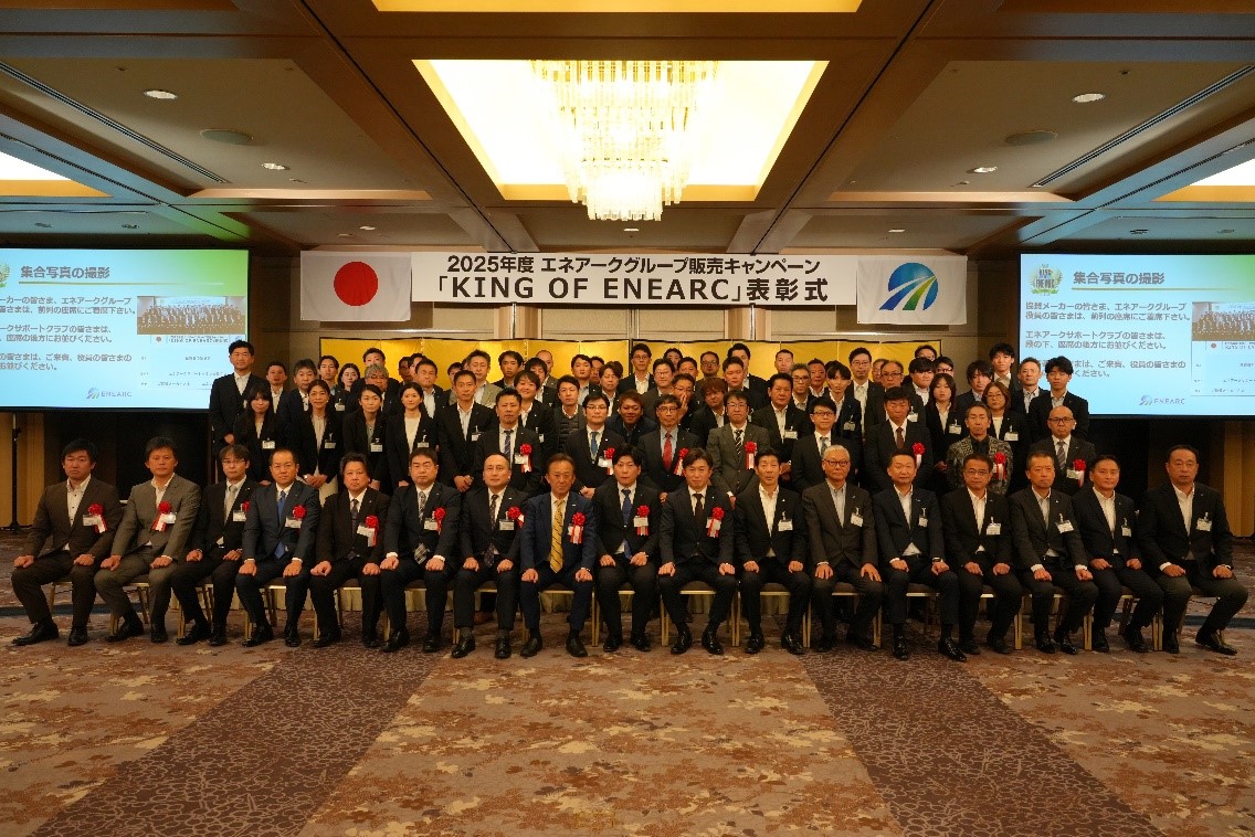 エネアーク(東京都港区、内田良樹社長)は2月20日、名古屋市のヒルトン名古屋で、グループ販売キャンペーン「KING OF ENEARC(キングオブエネアーク=KOE)」の全社表彰式を開催した。グループ関係者や協賛メーカーなど計129人が出席した。直売部門は2025年6月1日から12月20日まで、卸売部門は同11月30日までの期間で実施された。