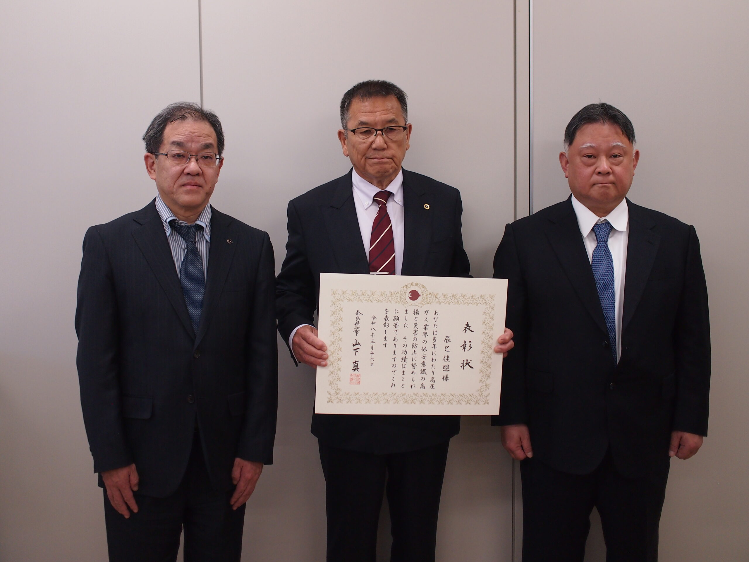 奈良県は16日、保安功労者として辰巳佳照氏(磯城郡三宅町、辰巳商会代表)を知事表彰した。奈良県庁で表彰式が行われ、尾﨑俊之危機管理監から表彰状が手渡された。