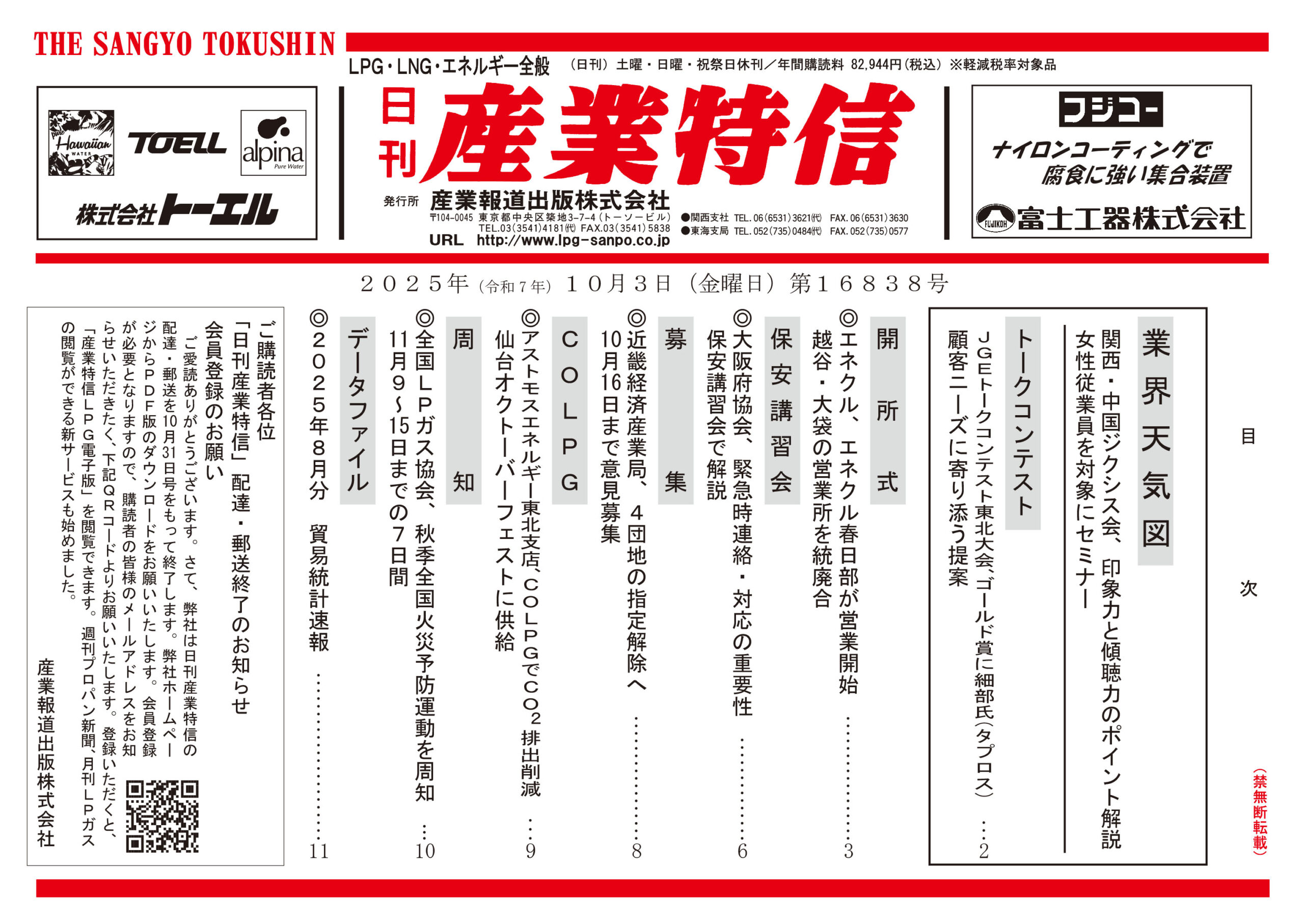 2025年(令和7 年)10月3日(金曜日)第16838号