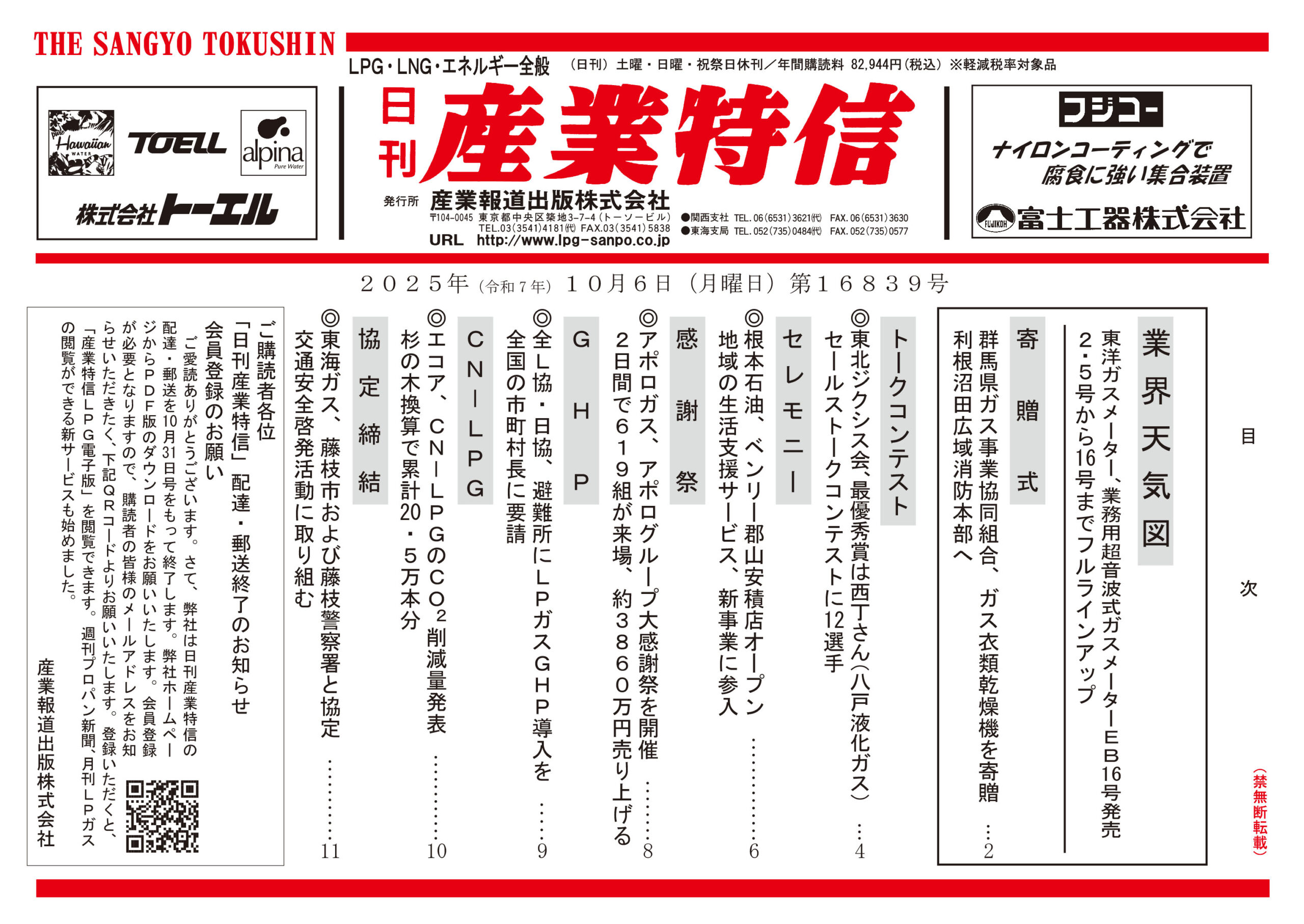 2025年(令和7 年)10月6日(月曜日)第16839号