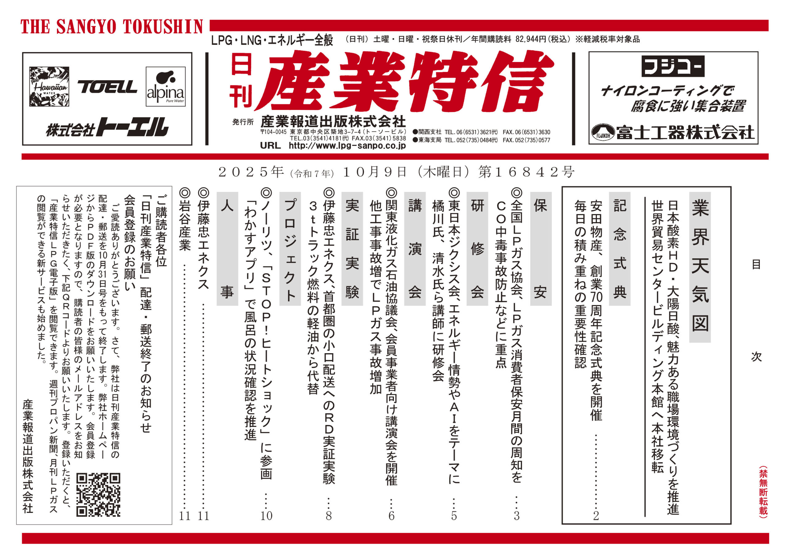 2025年(令和7 年)10月9日(木曜日)第16842号 バックナンバー X Facebook LINE 2025.10.09 ダウンロードには会員登録が必要です。 記事の続きの閲覧は会員(定期購読者)のみに制限されています。全文を読むには ログイン してください。