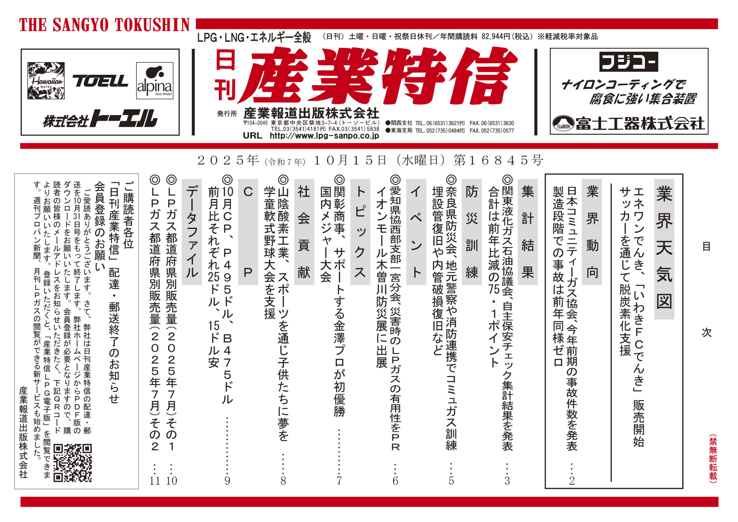 2025年(令和7 年)10月15日(水曜日)第16845号 バックナンバー X Facebook LINE 2025.10.15 ダウンロードには会員登録が必要です。 記事の続きの閲覧は会員(定期購読者)のみに制限されています。全文を読むには ログイン してください。