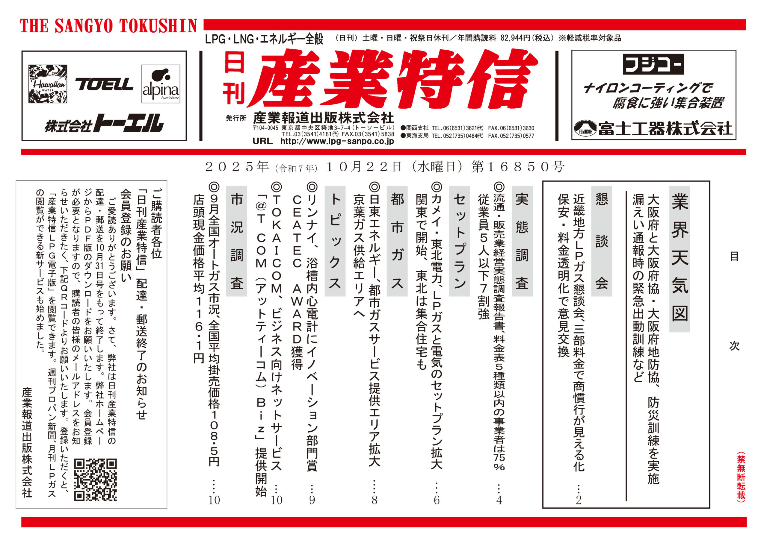 2025年(令和7 年)10月22日(水曜日)第16850号