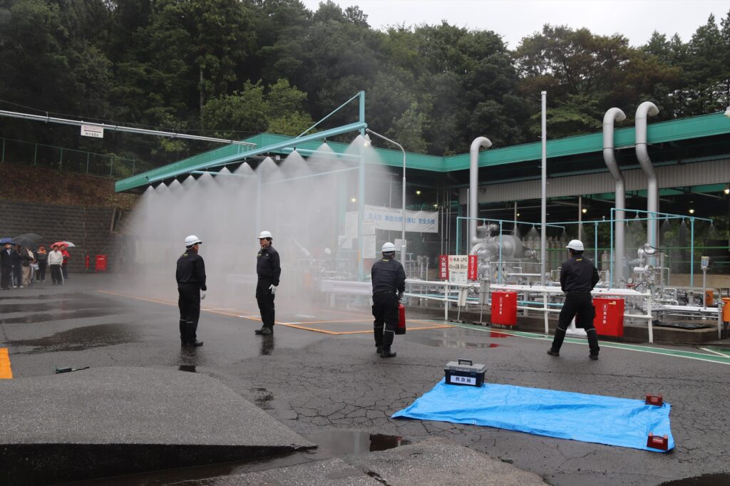 最初にあいさつに立った髙橋会長は、過去3年間の同訓練が郊外の県央地区で実施されたことに触れつつ、「今年は都市部の横浜で訓練を行う。都市部はLPガス事業者が減ってきているので、ここが中心にならないと(LPガス防災は)機能しない。今日はあいにくの雨天だが、災害に天気は関係ない。その点では絶好のコンディションかも知れないので、大いに訓練に精進していただきたい」と呼びかけた。