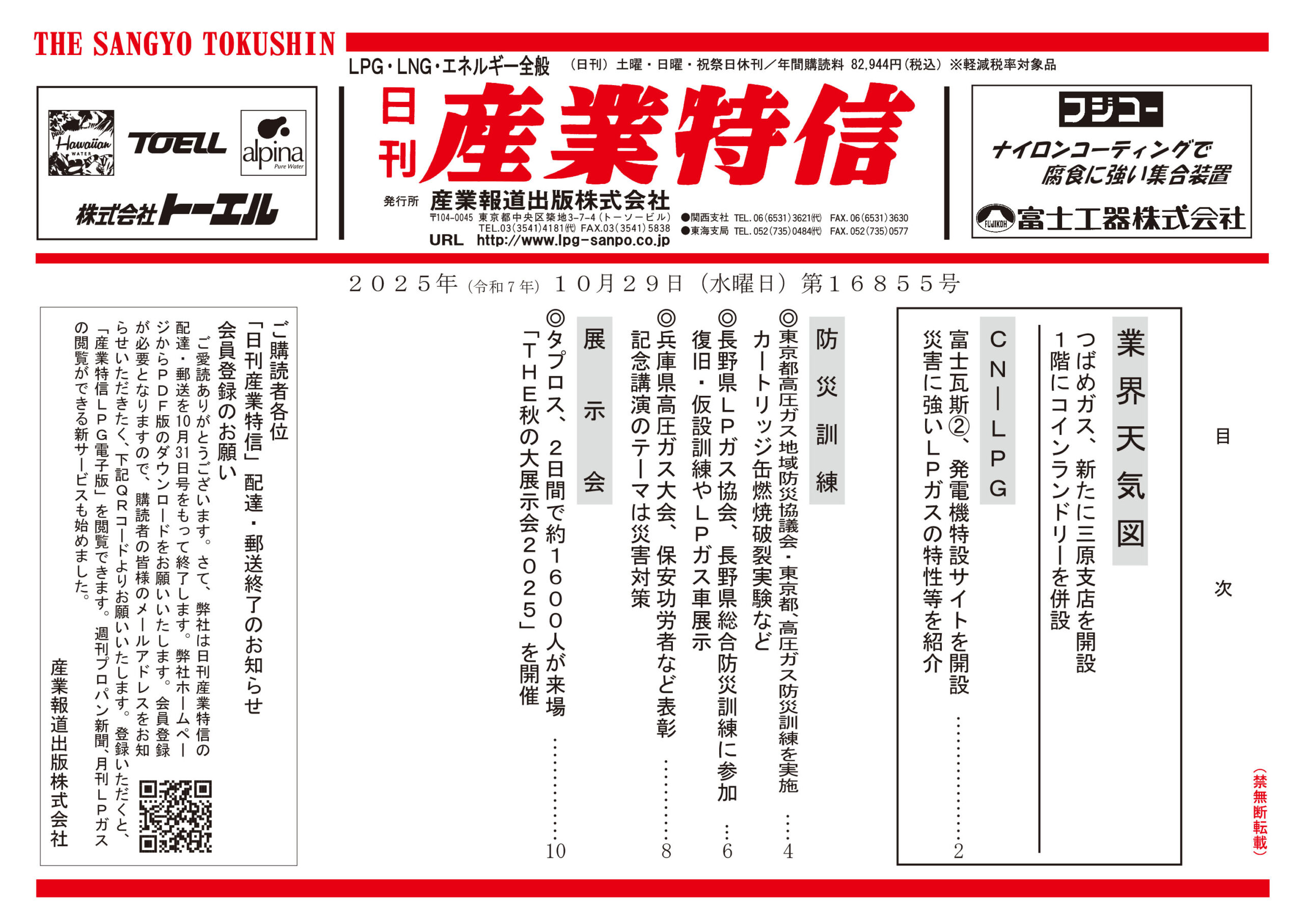 2025年(令和7 年)10月29日(水曜日)第16855号 バックナンバー X Facebook LINE 2025.10.29 ダウンロードには会員登録が必要です。 記事の続きの閲覧は会員(定期購読者)のみに制限されています。全文を読むには ログイン してください。