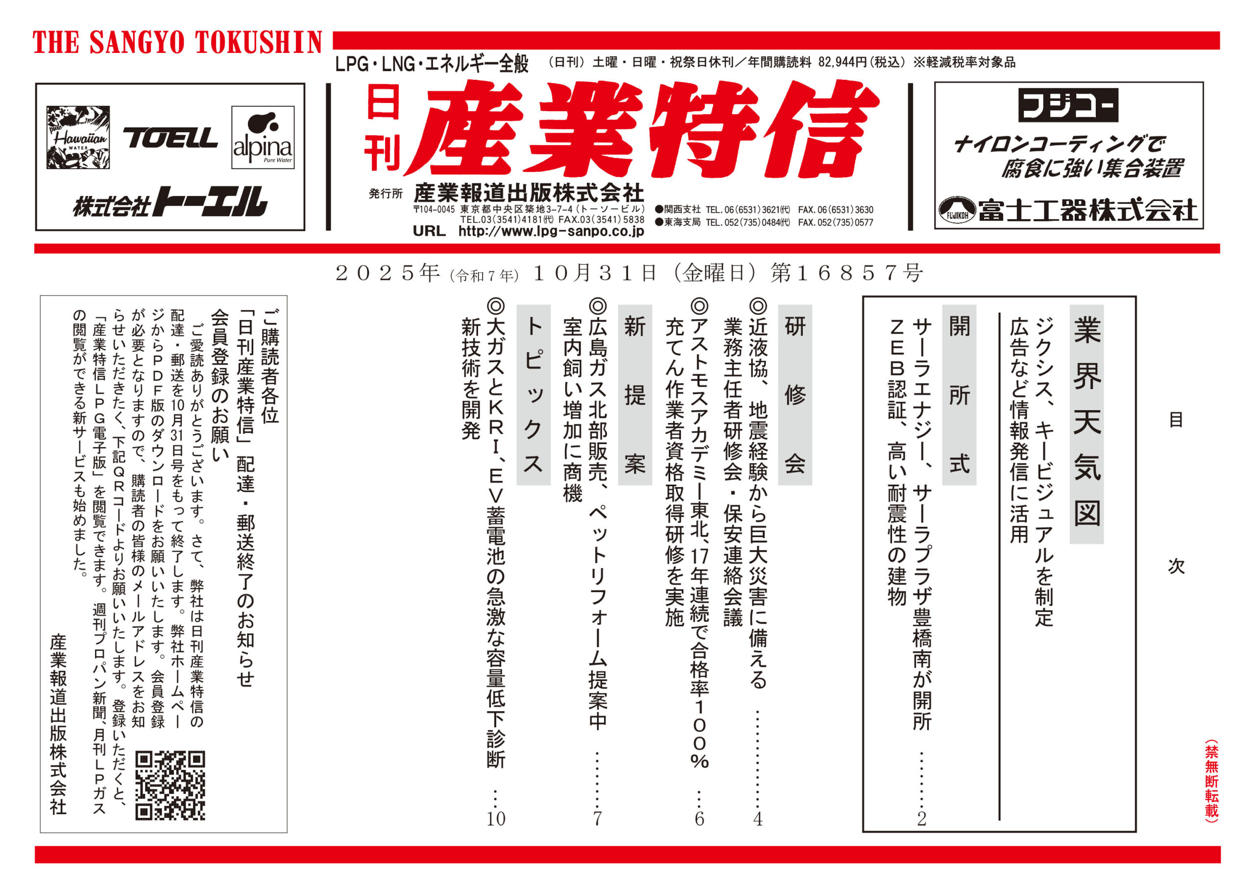 2025年(令和7 年)10月31日(金曜日)第16857号 バックナンバー X Facebook LINE 2025.10.31 ダウンロードには会員登録が必要です。 記事の続きの閲覧は会員(定期購読者)のみに制限されています。全文を読むには ログイン してください。
