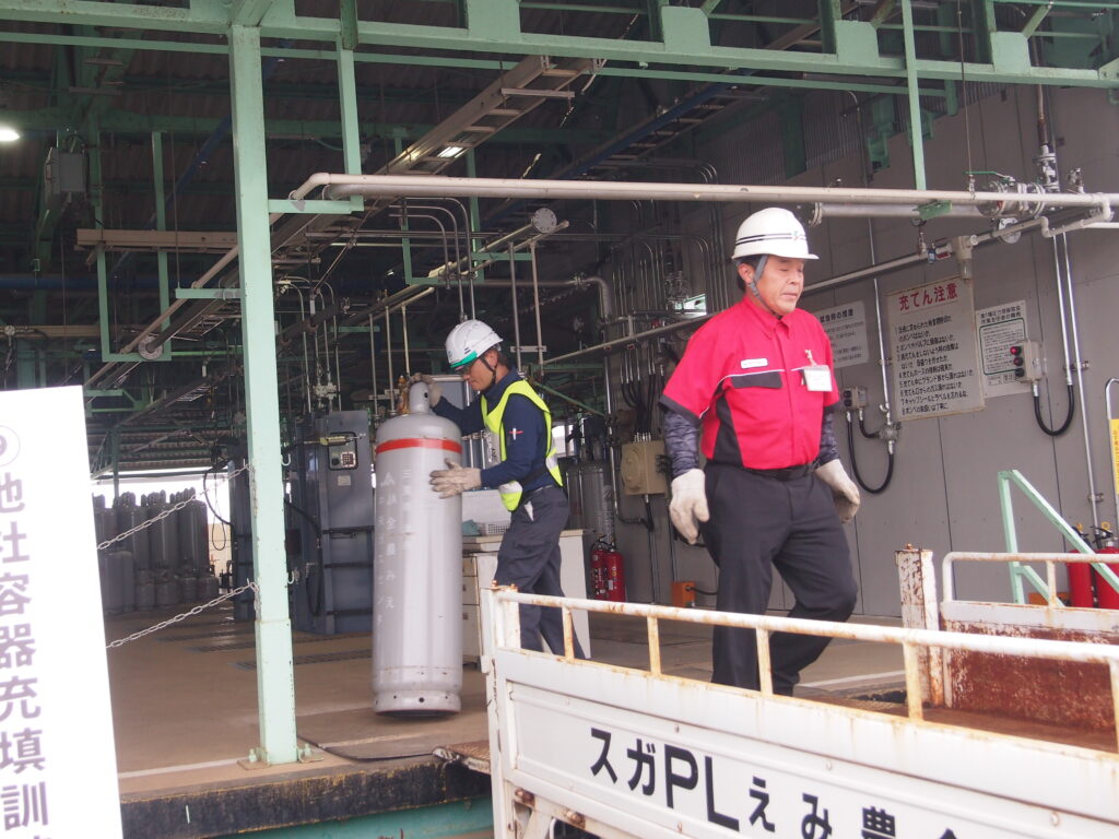 三重県LPガス協会(中井茂平会長)は10月21日、県内11中核充填所で訓練を行った。メイン会場の津市のエネアーク中部中勢センターでは非常用発電機起動やLPガス車充填、他系列への充填などの必須訓練のほか、昨年に続き元売会社への緊急出荷・配送要請や民間備蓄放出受入、今年からの消防通報、AED実地訓練など、LPガス緊急供給だけでなく災害時に想定される事態への対応も盛り込んだ。他中核充填所とリモート接続して連絡、またオンライン見学してもらったほか、上野ガス本社充填所から他の一般充填所への充填容器輸送訓練も並行して行った。