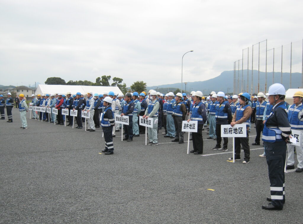 大分県LPガス協会(山田耕司会長)は11月5日、中津市のダイハツ九州スポーツパーク大貞で、令和7年度大分県LPガス総合防災訓練を実施した。同協会は平成26年に県と「災害時におけるLPガス供給等に関する協定」を締結して以来、地区協議会(市町村単位)、県内4地域、県全体の訓練を実施してきた。コロナ禍もあって、県全体の訓練は平成29年以来8年ぶりとなる。県内全地区協議会参加の大規模な訓練で、災害時協定に基づくLPガス設備持ち出し稼働、LPガスによる発電・給湯などを行った。