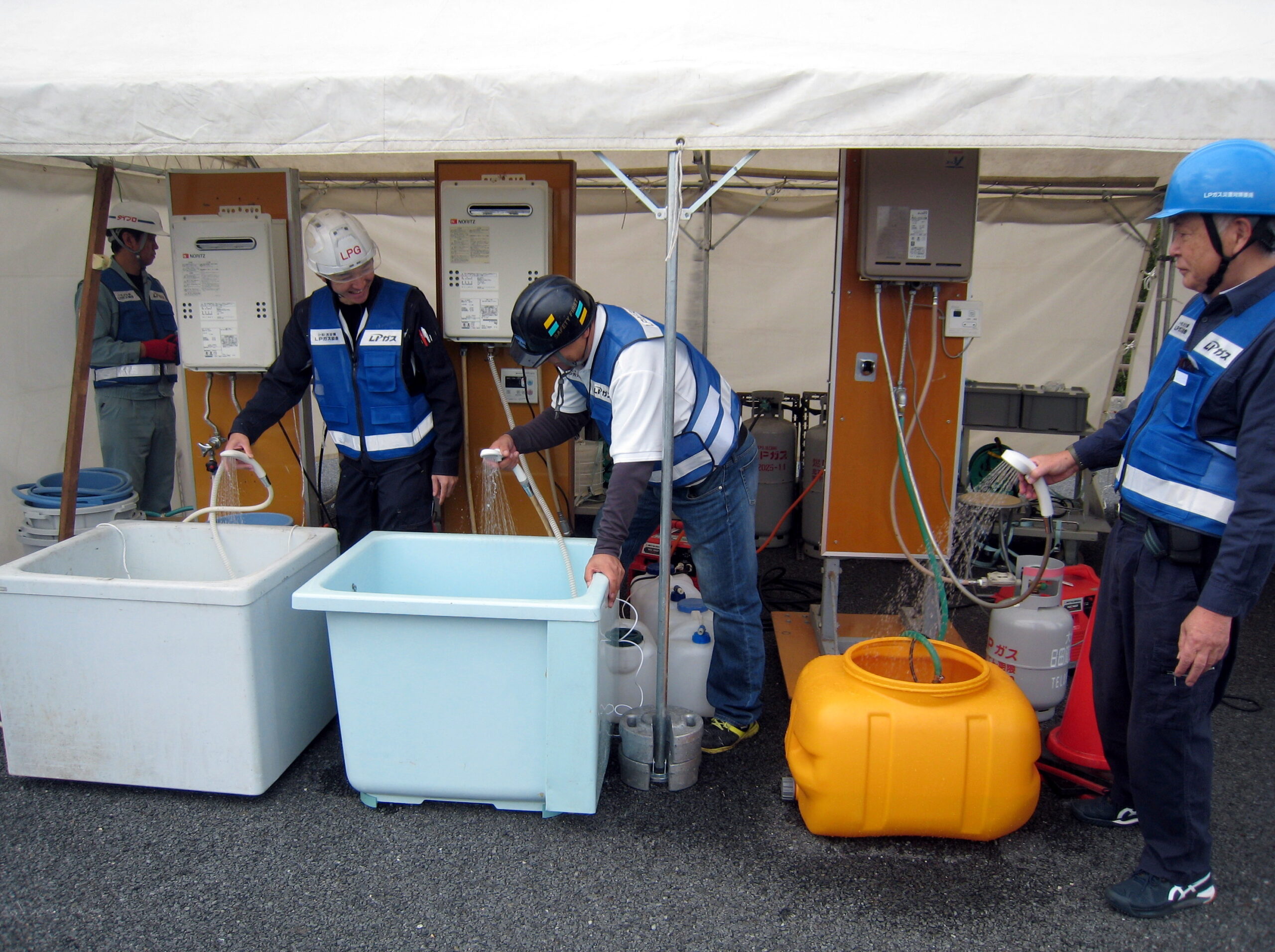 大分県LPガス協会(山田耕司会長)は11月5日、中津市のダイハツ九州スポーツパーク大貞で、令和7年度大分県LPガス総合防災訓練を実施した。同協会は平成26年に県と「災害時におけるLPガス供給等に関する協定」を締結して以来、地区協議会(市町村単位)、県内4地域、県全体の訓練を実施してきた。コロナ禍もあって、県全体の訓練は平成29年以来8年ぶりとなる。県内全地区協議会参加の大規模な訓練で、災害時協定に基づくLPガス設備持ち出し稼働、LPガスによる発電・給湯などを行った。