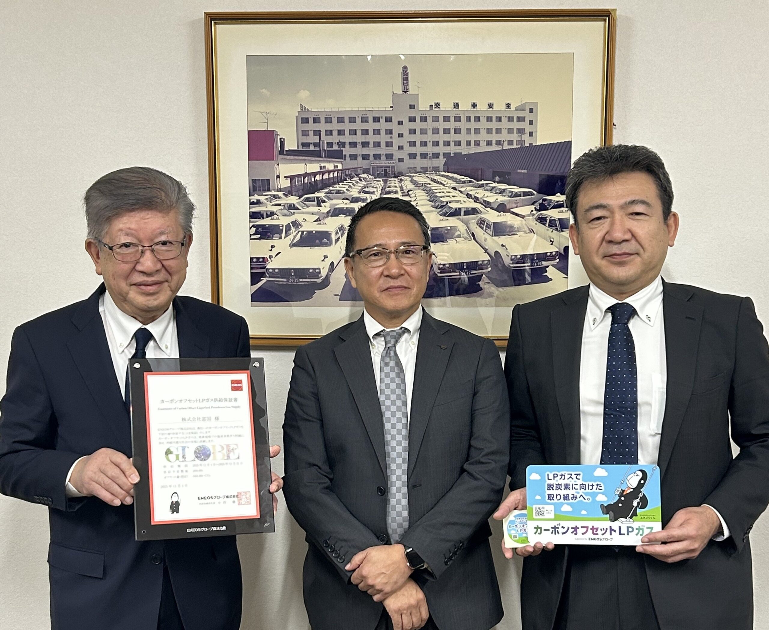 NEOSグローブ(東京都千代田区、小西徹社長)、北海道交運事業協同組合グループの札幌交通(北海道北広島市、藤井弘之社長)、富国興産(札幌市、福岡道廣社長)を中核とする富国興産グループ(以下「富国興産」)の3社は11月18日、カーボンオフセットLPガス(COLPG)の供給・受け入れを開始すると連名で発表した。