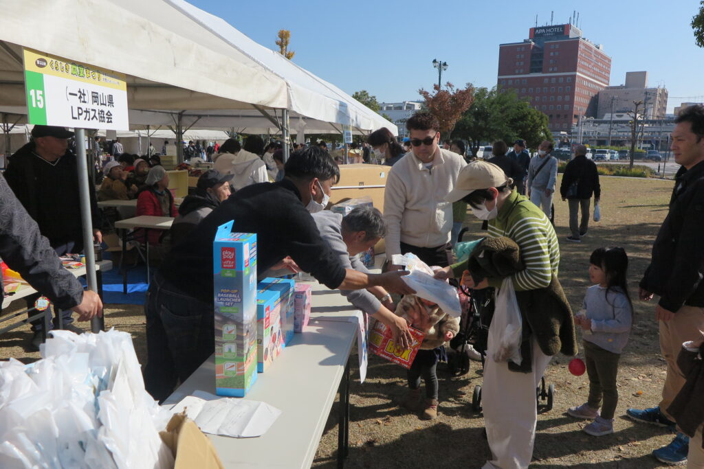 岡山県LPガス協会(髙山眞司会長)の倉敷支部(藤田光則支部長)と児島支部(谷健一支部長)、玉島支部(上野洋輔支部長)の3支部は、11月30日、倉敷みらい公園で開催された「第55回くらしき農業まつり」(倉敷市・晴れの国岡山農業協同組合主催)にブースを出展し、子どもたちを対象としたくじ引きの実施やLPガスの保安啓発活動を行った。