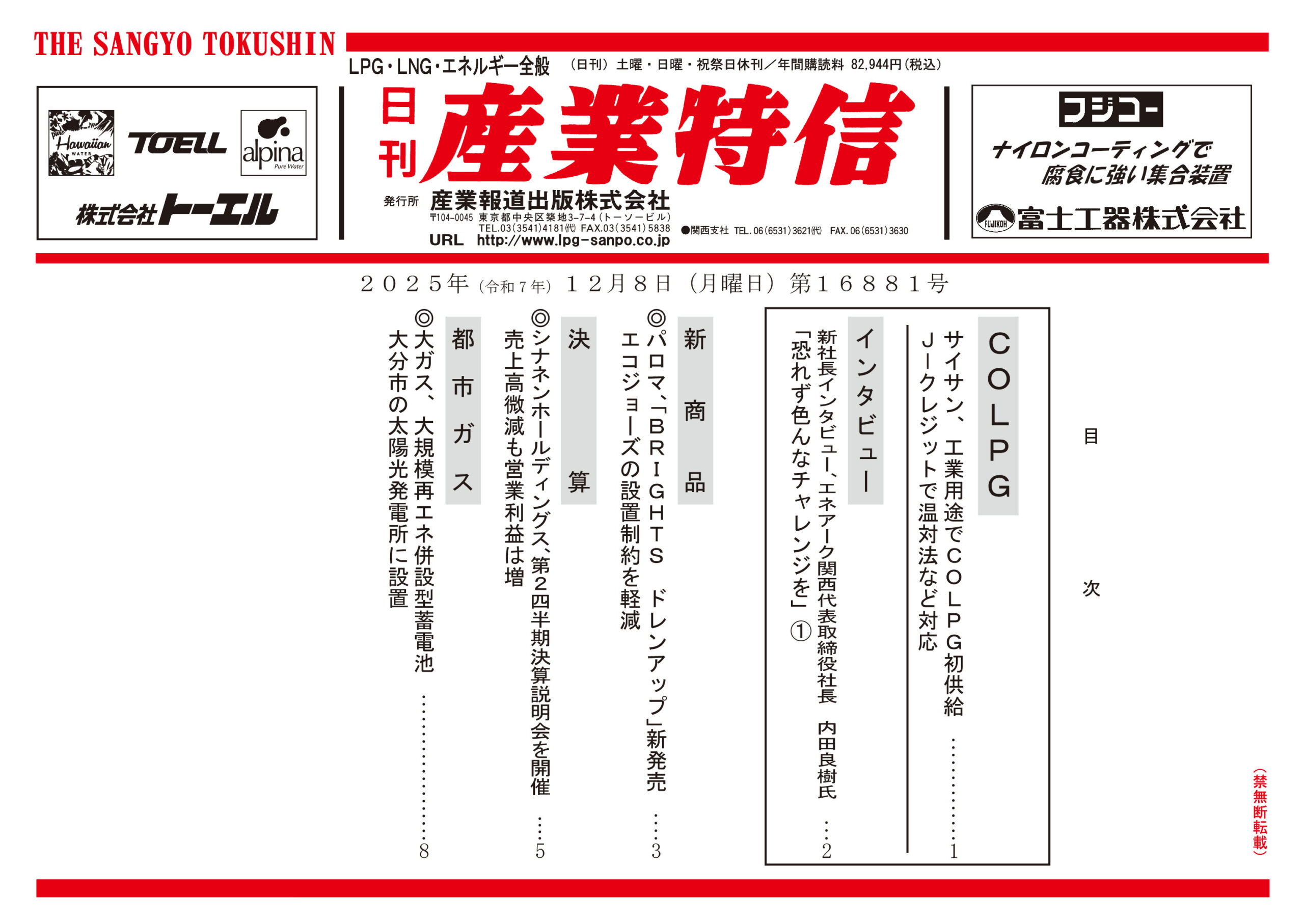 2025年(令和7 年)12月8日(月曜日)第16881号 バックナンバー X Facebook LINE 2025.12.08 ダウンロードには会員登録が必要です。 記事の続きの閲覧は会員(定期購読者)のみに制限されています。全文を読むには ログイン してください。