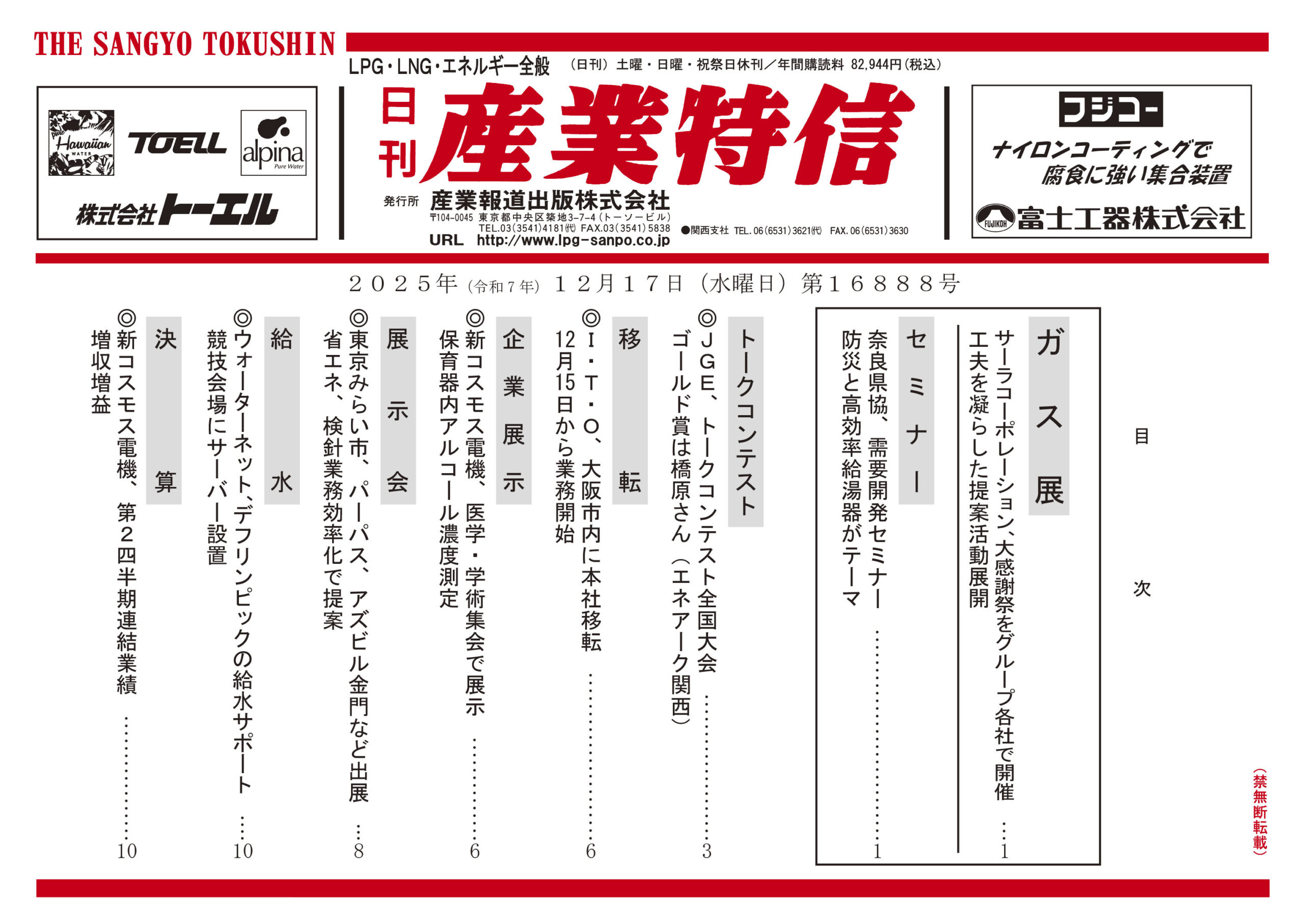 2025年(令和7 年)12月17日(水曜日)第16888号 バックナンバー X Facebook LINE 2025.12.17 ダウンロードには会員登録が必要です。 記事の続きの閲覧は会員(定期購読者)のみに制限されています。全文を読むには ログイン してください。