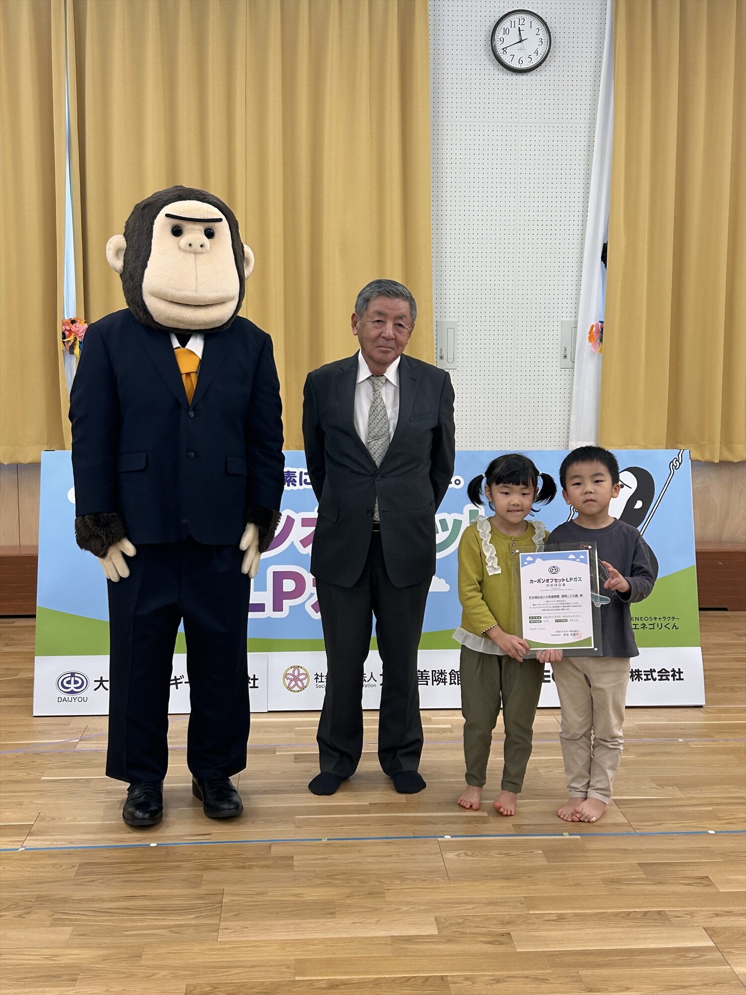 大城エネルギー(石川県能美市、西本和喜夫社長)は11日、能美市内の社会福祉法人大和善隣館「湯野こども園」でカーボンオフセットLPガス(COLPG)の供給証明書授与式を開催した。湯野こども園の新園舎で使用するLPガスを大城エネルギーが供給するCOLPGにすることで合意したことに伴うもの。保育所・こども園として全国的にも珍しく、北陸三県で初めての取り組みとなる。