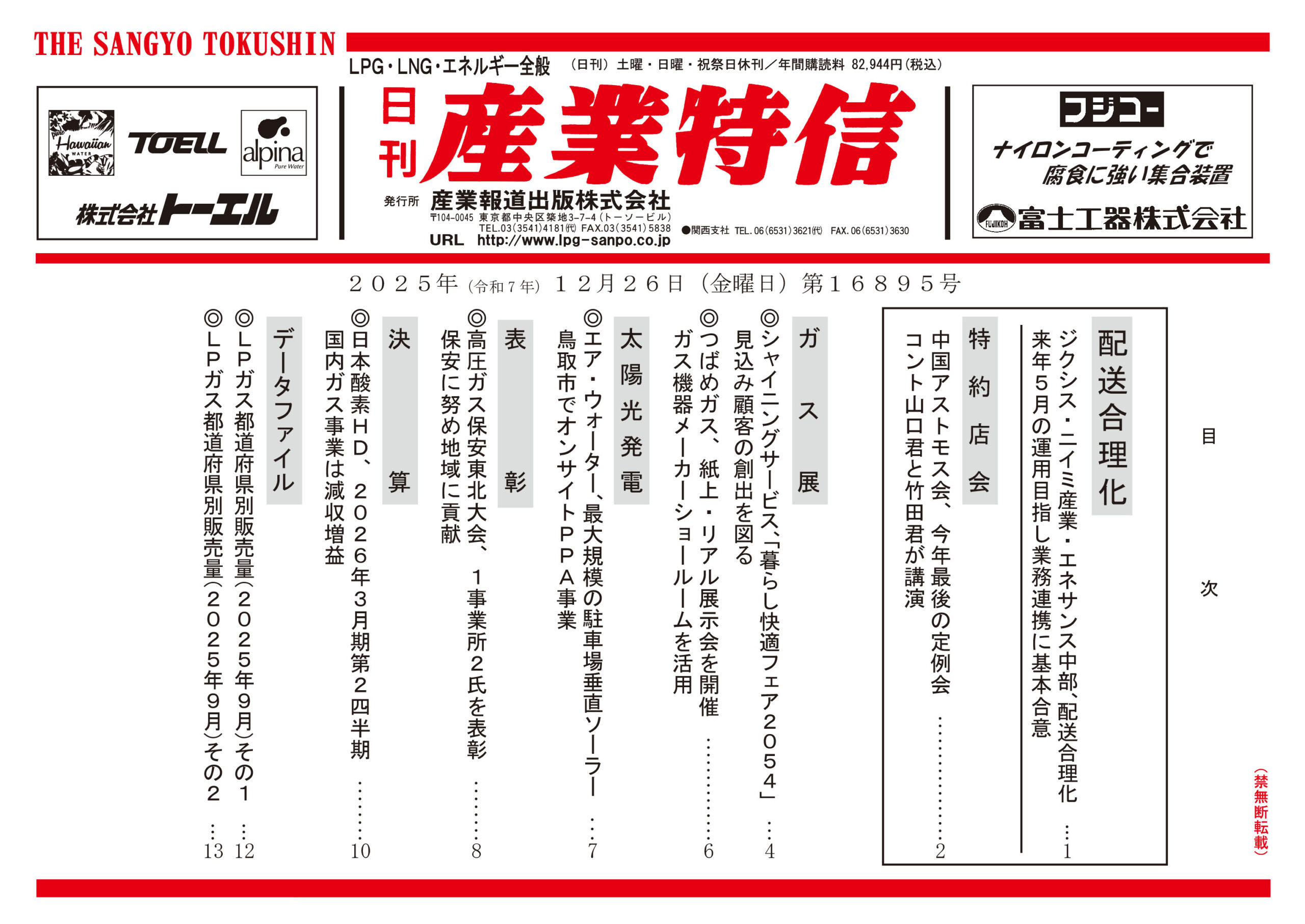 2025年(令和7 年)12月26日(金曜日)第16895号 バックナンバー X Facebook LINE 2025.12.26 ダウンロードには会員登録が必要です。 記事の続きの閲覧は会員(定期購読者)のみに制限されています。全文を読むには ログイン してください。