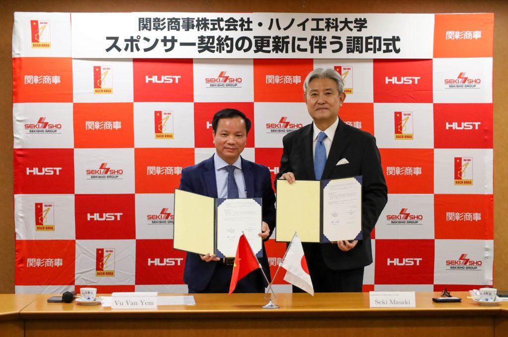 関彰商事(茨城県筑西市・つくば市、関正樹社長)は11月28日、つくばオフィスで、ベトナムのハノイ工科大学とのスポンサー契約更新に伴う調印式を行った。両者は2018年より提携を継続しており、今回の更新によりさらに協力関係を深化させる。